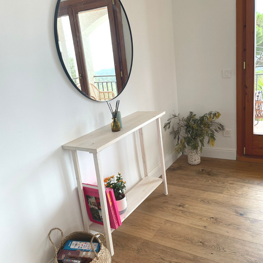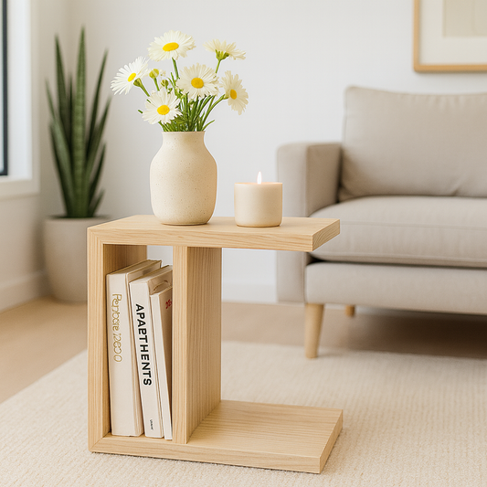 Mesa auxiliar Cora de madera maciza – diseño minimalista y natural para espacios pequeños