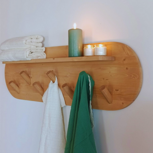 Ganchos de Pared en Madera maciza de Pino - Diseño Elegante y Resistente para Organización del Hogar