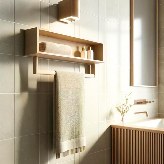 Toallero de baño de madera de haya estilo minimalista 35 cm, ideal para organizar y decorar